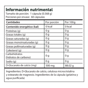 El glucarato de calcio participa en procesos metabólicos relacionados con la eliminación de compuestos a través de las vías naturales de detoxificación del organismo.