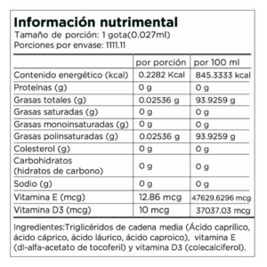 FIXXD3 contiene Vitamina D3 (colecalciferol) disuelta en Triglicéridos de Cadena Media (MCT)
