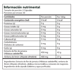 Con extracto de Hibiscus sabdariffa y Aloysia citrodora de grado farmacéutico
